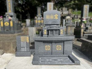 奥にある黒御影石がお客様のお墓です。ご事情を伺うと、お墓を建てたお父様が昨年亡くなって、施主様ご夫婦も息子さんのいらっしゃる関東へ引っ越されることになったそうです。「佐世保にはなかなか帰ってこられなくなるため、お墓を片付けてから行きたい」というお話でした。